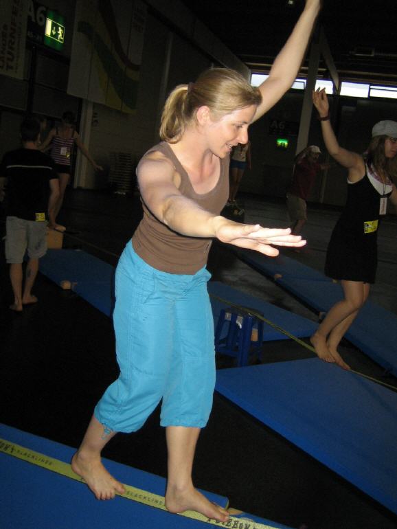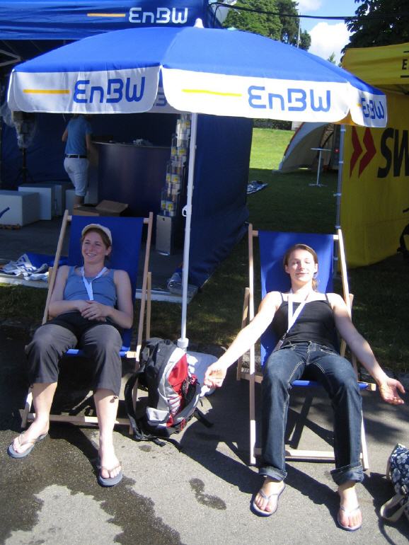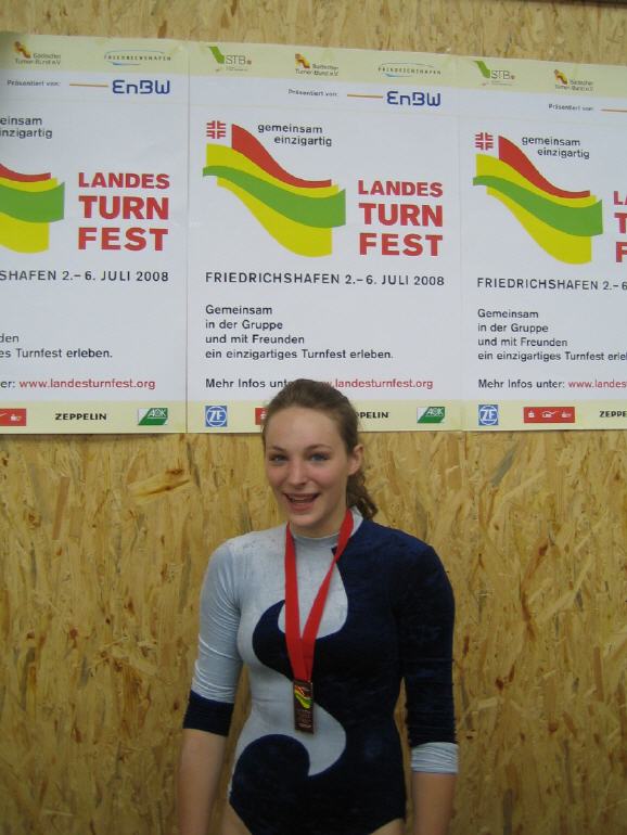 Landesturnfest Friedrichshafen 02. bis 05.Juli 2008 Nach Konstanz 2001, Villingen-Schwenningen 2003 und Heidelberg 2006 fand das 4. gemeinsame Landesturnfest des Badischen und Schwäbischen Turnerbundes dieses Jahr in Friedrichshafen vom statt. Wie schon berichtet, tummelten sich bedingt durch Klausuren, Vergleichsarbeiten etc. lediglich 5 TVN-ler unter den 15.000 Turnfestteilnehmern. Von der Leistungsturngruppe machten sich Andrea Baumann und Sabine Jung zusammen mit ihrer Trainerin Tanja in den frühen Morgenstunden des Donnerstages – 6.00 Uhr – auf zu einer Kurzteilnahme (3 Tage) in Richtung Friedrichshafen. Nach Einquartierung in der Johann-Peter-Hebel-Schule stand um 11.00 Uhr der Wahlwettkampf W 20-24 von Sabine auf dem Programm. Nach Boden, Schwebebalken und Mini-Trampolin stellte uns als letztes Gerät das Reck vor größere Probleme. Für Sabine „Reckriehmen ein Fremdwort“ stellte sich die Frage, wie man diesen mit „offenen“ Händen bewältigen sollte. |