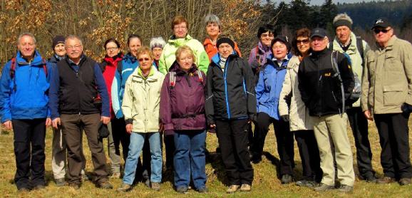 TV- Wandergruppe von Schwarzenberg aus unterwegs..... Am vergangenen Sonntag machten sich insgesamt 18 Wanderer/-innen auf den Weg nach Schömberg- Schwarzenberg. Bei kaltem aber doch vielversprechendem Wetter startete die Gruppe in Schwarzenberg in Richtung Kapfenhardt. Bald fand am Schwarzenberger Steinkreis, einem Kreis von 22 mit keltischen Ornamenten verzierten Bundsandsteinen, die erste Pause statt. Entlang des Eulenbachs ging es weiter zur Unteren Kapfenhardter Mühle. In Richtung Bieselsberg forderte dannt der erste steile Anstieg die ersten Schweißtropfen. Nach Durchquerung des auf 570 m ü.d. M. wunderschön gelegenen Schömberger Ortsteils erreichte die Wanderschar die Bieselsberger Sternwarte. Dort entschloss man sich auf Holzstämmen in der begehrten Sonne die Mittagsrast einzulegen. |