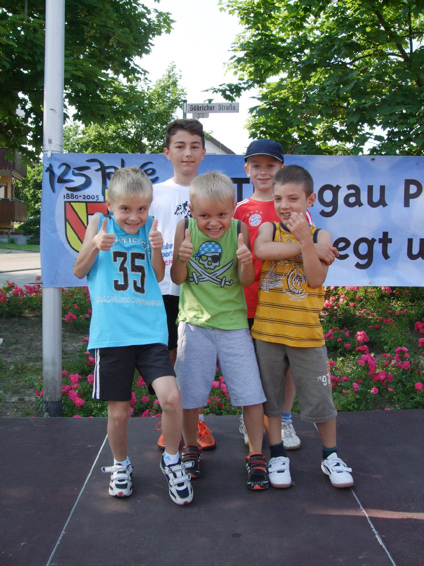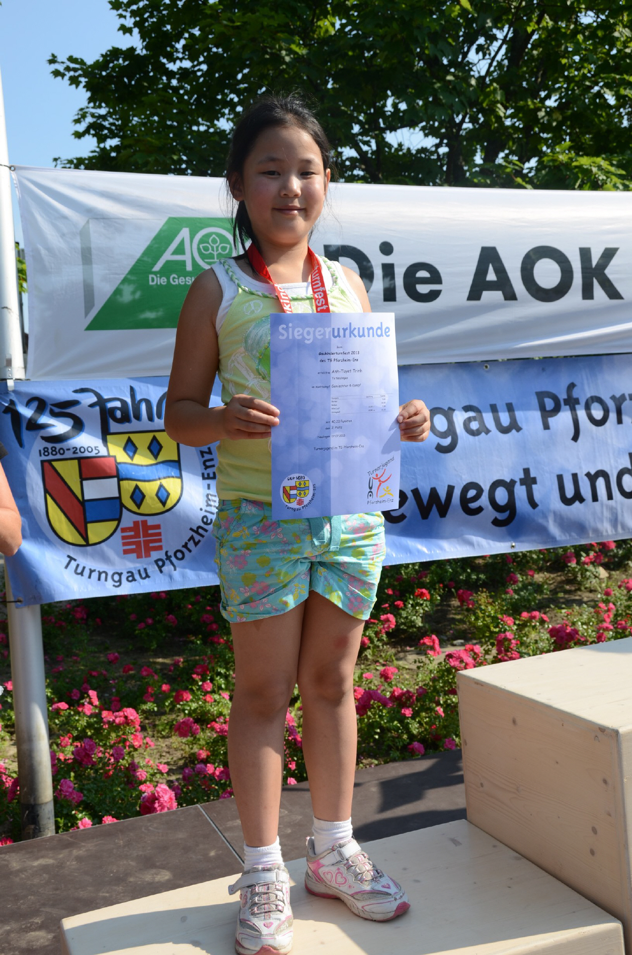 - 14 Podestplätze - 4 x Gold, 4 x Silber, 6 x BronzeBei strahlendem Sonnenschein nahmen 37 Mädchen und 5 Jungs am Gaukinderturnfest des Turngaues Pforzheim am 7. Juli 2013 teil, welches dieses Jahr direkt vor der Haustüre - in und um die Gräfin-Rhena-Halle in Bauschlott - stattfand. Einige sparten nicht mit ihren Kräften und nutzten tags zuvor auch schon die Möglichkeit zur Abnahme des Sportabzeichens beim Sportabzeichentag. |