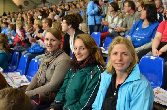 Das alle 4 Jahre stattfindende Internationale Deutsche Turnfest fand vom 18. bis 25 Mai 2013 in der Metropolregion Rhein-Neckar statt. Im Hinblick auf die Aufteilung der Veranstaltungen und Wettkämpfe auf Mannheim, Ludwigshafen, Heidelberg, Schwetzingen sowie die umliegenden Gemeinden und die damit verbundenen „langen Wege“ statteten Andrea, Nadine und Tanja dem Turnfest lediglich einen Kurzbesuch ab. |