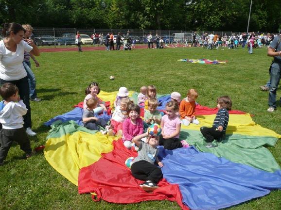 | Viele der Spiele dienen dazu, die Koordination von Armen und Beinen, den Gleichgewichtssinn und das Körpergefühl insgesamt zu trainieren. Auch dieses Jahr hat es wieder allen Kindern und Eltern großen Spaß gemacht. Jedes Kind bekam noch zur Stärkung eine Wurst und ein Getränk. |