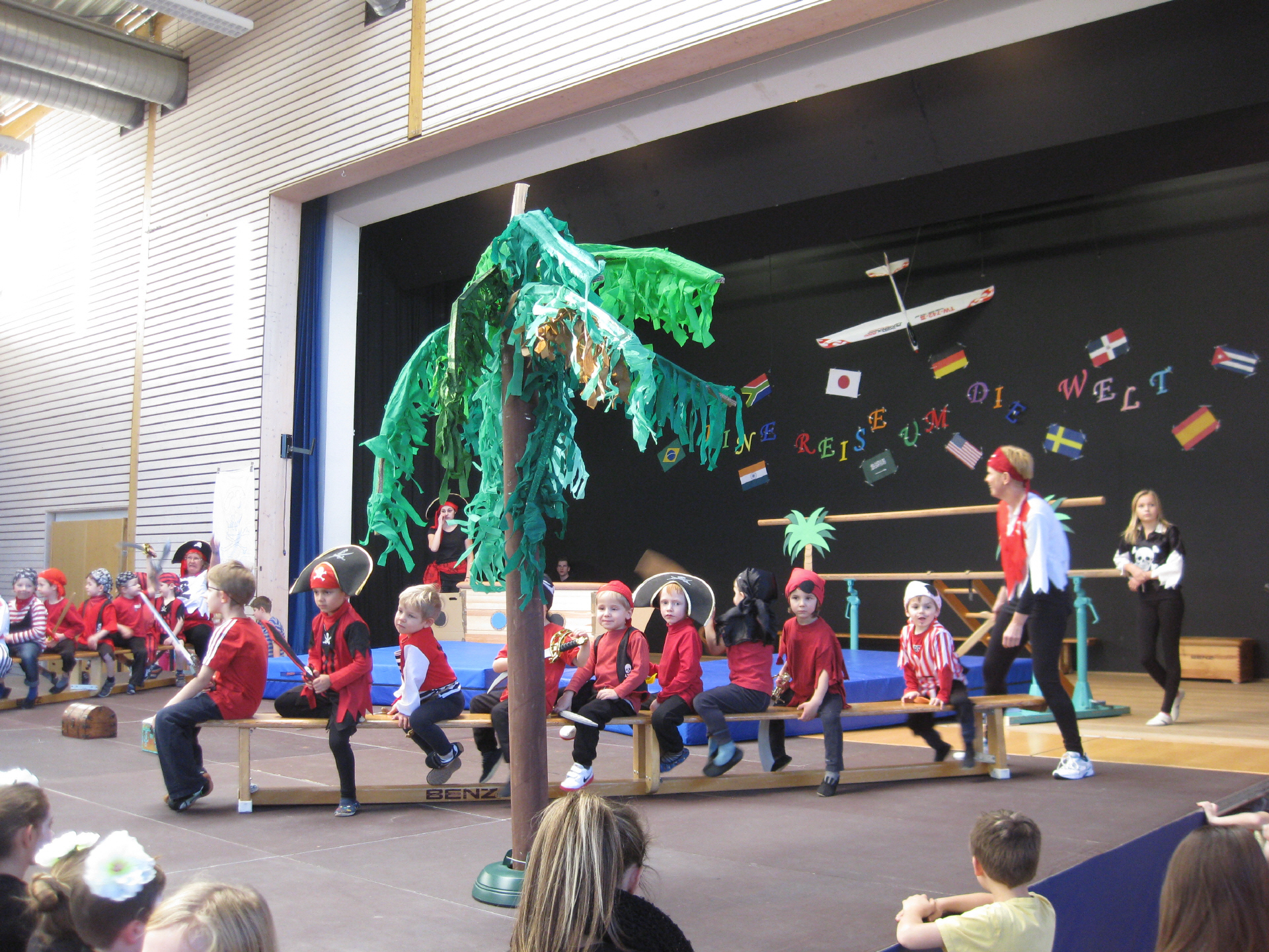 Selbst in bisher unbekannte Länder wurde man entführt. Pipi Langstrumpf zeigte uns vergnügt Ihr Taka-Tuka Land. Als letztes Reiseziel – wie konnte es auch anders sein – flog unser Flugzeug auf Deutschlands liebste Insel – Mallorca! Daß hier nicht nur Party angesagt ist, bewies die Leistungsgruppe von Tanja Reimann eindrucksvoll. Auch ohne Ballermann wurde den Zuschauern bei den turbulenten Drehungen schwindelig.