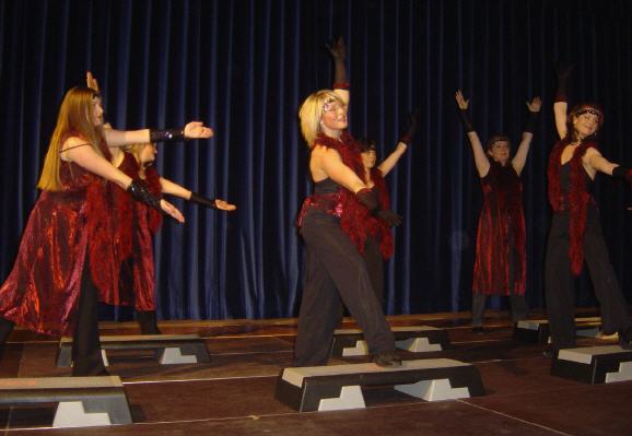 | Unsere Step-Girls der Aerobic-Gruppe von Sandra Nägle sind Heike Elsässer, Andrea Gerber, Katja und Olga Hörner, Melanie Lewender, Silvia Steudle und Maja Vetter, sie zeigten eine fetzige Step-Choreografie auf den aktuellen Erfolgshit der Popdiva Madonna. |