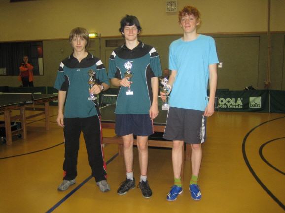 Ergebnis: 1. Felix Krauß (Mitte) 2. Moritz Krauß (links) 3. Moritz Exner (rechts) Bei den Herren waren 12 Teilnehmer am Start. Nach den Gruppen und Halbfinalspielen standen sich Bernd Stroh und Dominik Fabricius gegenüber. Bernd Stroh nutzte dabei seine ganze Routine und gewann sicher. |