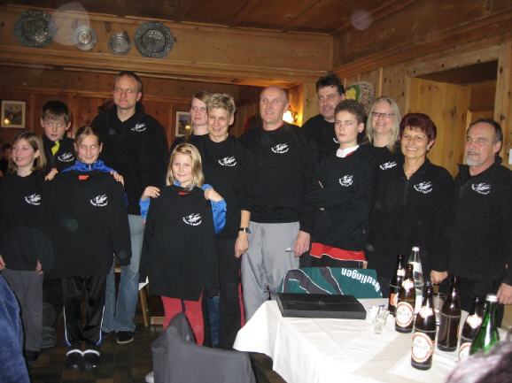| Unser Bild zeigt die Ehrung für 5 und 10malige Teilnahme an unserer Skifreizeit. |