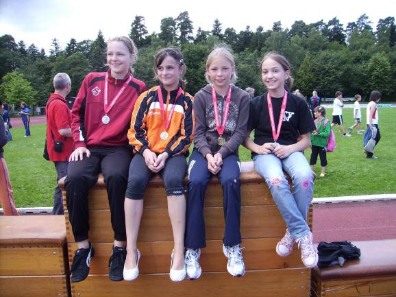 | 1 x Gold, 2x Silber und 1x Bronze hieß es dann bei der Siegerehrung. Diese hervorragenden Ergebnisse wurden erturnt von Enya- Sophie König, Katharina Fontana, Lucia Grimm und Giulia Augenstein. |