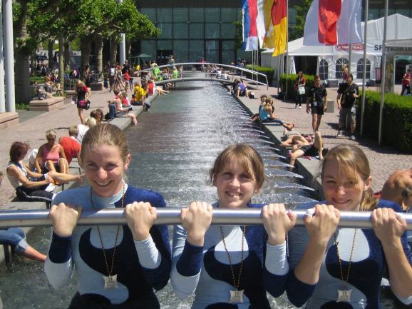 Was gibt es sonst noch vom Turnfest zu berichten:Die anfängliche Skepsis über die Übernachtung mit 50 weiteren Turnfestteilnehmern in der Turnhalle hatte sich schnell gelegt. Es gab mehr Platz als in den Klassenzimmern und mit einem Weichboden als Bett konnte sogar das nächtliche „Schnarchkonzert“ ertragen werden. Die musikalische Umrahmung der abendlichen Veranstaltungen – „Turnfestgala“, „Japanese Gymnastics an Culture Night“, „Rendezvous der Besten“, Gerätturnfinale, Stadiongala – hätte teilweise etwas mehr „Pep“ benötigt.Den „Stuwweltest“ mit „Geld zum Fenster hinaus werfen“, „Apfelweinkrüge stemmen“, „Brücken bauen“, „Römerpuzzle“ etc. haben alle bestanden. Sabine und Stephanie waren hierbei sogar im Rhein-Main-TV zu sehenDer Handstand-TÜV wurde bis zum nächsten Turnfest 2013 in der Rhein-Neckar-Region (Mannheim, Heidelberg, Ludwigshafen) verlängertDas Handy von Sabine wurde von einem ehrlichen Finder am Ende des Turnfestes im Fundbüro der Turnfestmesse abgegeben.Fazit: Das Turnfest war schön, mit dem Turnfest 2005 in Berlin konnte Frankfurt jedoch nicht konkurrieren. Abschließend noch ein herzliches Dankeschön an die Verwaltung für die finanzielle Unterstützung. |