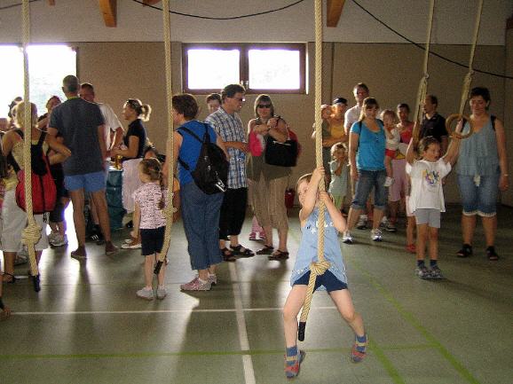 Viele der Spiele dienen dazu, die Koordination von Armen und Beinen, den Gleichgewichtssinn und das Körpergefühl insgesamt zu trainieren. Auch dieses Jahr hat es wieder allen Kindern und Eltern viel Spaß gemacht. Jedes Kind bekam noch zur Stärkung eine Wurst mit Brötchen und Fanta oder Apfelschorle. |