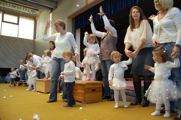 | Zuvor hatten die einzelnen Gruppen, angefangen bei den Kleinsten der Eltern-Kind-Gruppen bis zu den Leistungsturnerinnen, die Gäste mit einem abwechslungsreichen Programm erfreut. |