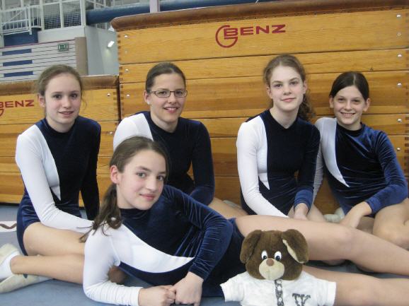 | Julia Hanak, Sabrina Walz, Jannika Krause, Lara Vitzthum und Larissa Prokosch erreichten in der Altersklasse 1999 und jünger mit 150,25 Punkten den 6. Platz. |