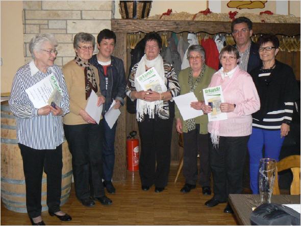 Für 45-jährige Vereinszugehörigkeit: Sigrid Brand, Anneliese Löffler, Elke Sulzer, Klaudia Sulzer, Maria Tobler, Pauline Weber