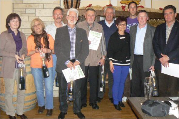 Für 25-jährige Vereinszugehörigkeit: Eva Sauter, Katja Straub, Jutta Straub, Bernhard Stroh, Klaus Schöner; Dieter Bee, Jürgen Lewender, Miriam Beck, Martin Straub, Dieter Bürkle, Ellen Maier, Christoph Straub